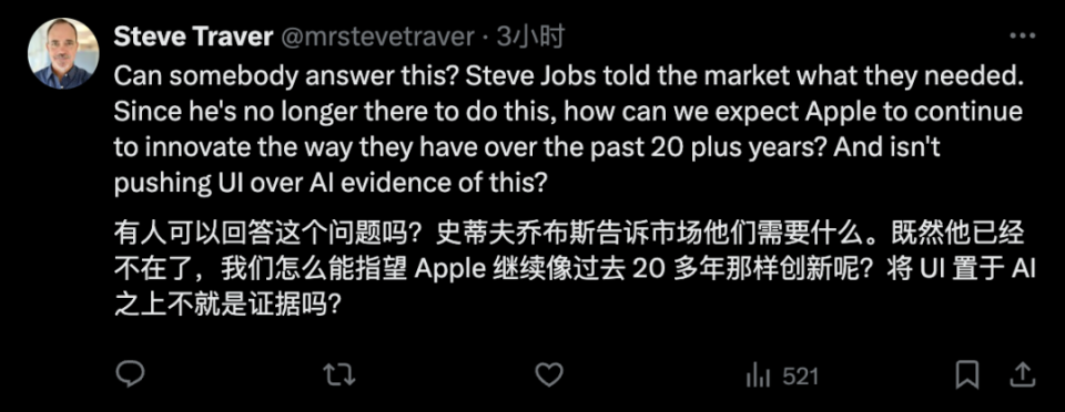 而将UI 置于AI 之上的苹果,也正是苹果失去创新的最好证据。