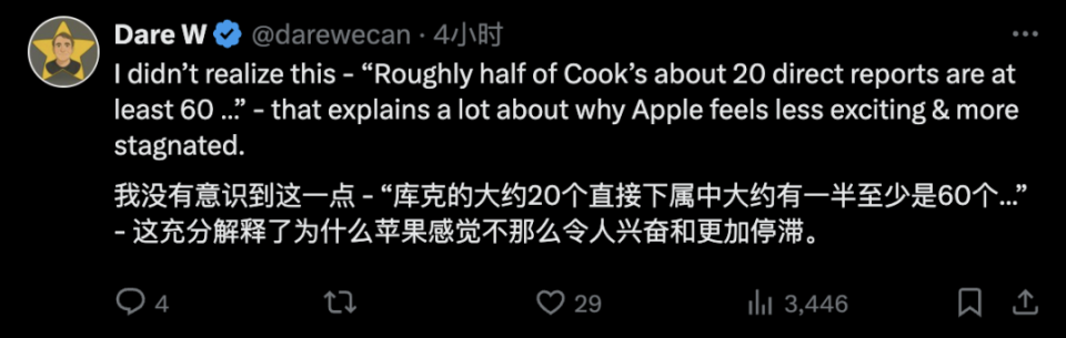 苹果失去优势是因为它太高效了。效率帮助苹果成为世界上最赚钱的公司之一。但现在它正在扼杀魔力。这种「效率至上」的文化,让苹果变成了一台精密的赚钱机器,但也让它失去了冒险精神和创新动力。