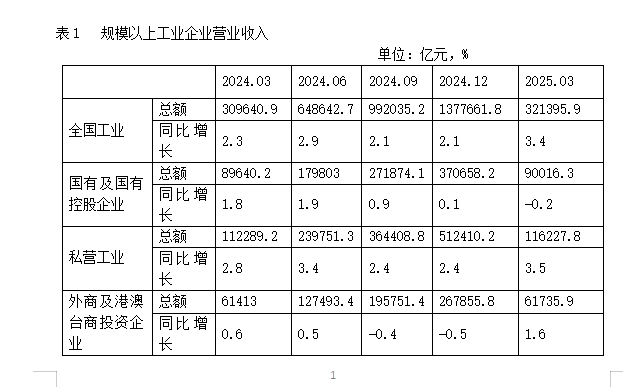 徐鹏飞/文 2025年一季度,我国工业经济运行稳中向好,工业企业利润由降转增,产业结构持续优化,实现良好开局。但工业经济下行压力仍然较大,特别是国内有效需求增长动力不足,国际环境的不确定性日益凸显,工业发展不可避免会受到冲击,部分行业和企业还可能遇到较大的困难。